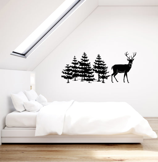 Autocollant mural en vinyle Arbres Cerf Nature Décor Chasse Art Salon Maison Autocollants Mural (ig5524)