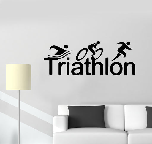 Autocollant mural en vinyle Triathlon Natation Vélo Course Sports Art Décor Autocollants Mural Cadeau Unique (ig4946)