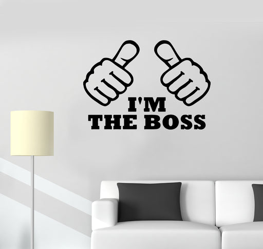 Autocollant mural en vinyle avec inscription « Gestes des mains » et mots « Cool I'm The Boss » (ed1336)