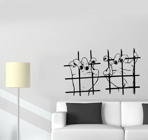 Autocollant mural en vinyle représentant des mains derrière les barreaux d'un détenu (ed2130)
