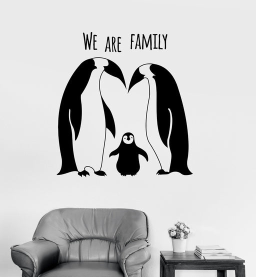 Autocollant mural en vinyle Pingouins Famille d'animaux Mignons Autocollants de décoration de chambre Cadeau unique (ig3133)