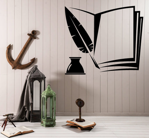 Autocollant mural en vinyle en forme de livre, plume, décoration d'intérieur, cadeau unique, z4716