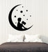 Autocollant mural en vinyle représentant un garçon lisant sur un croissant de lune, autocollants pour livres de contes de fées (3480ig)