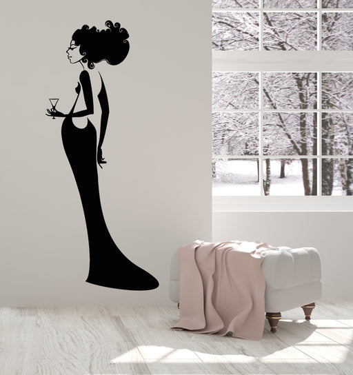 Autocollant mural en vinyle représentant une femme en robe de soirée, cocktail, dos sexy, fête (2115ig)