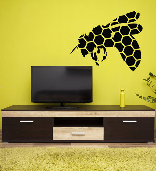 Autocollant mural en vinyle représentant une abeille volante et des nids d'abeilles (g7158)
