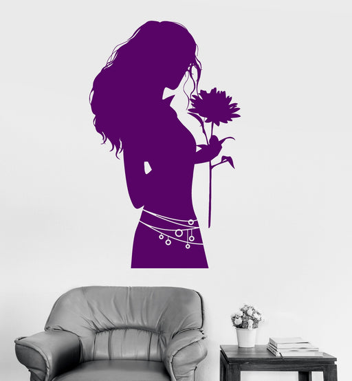 Autocollant mural en vinyle Silhouette de femme avec fleuriste Autocollants muraux Cadeau unique (ig3930)