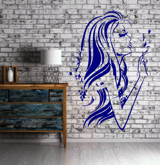 Sticker mural en vinyle autocollant belle femme cheveux longs décor cadeau unique (m418)