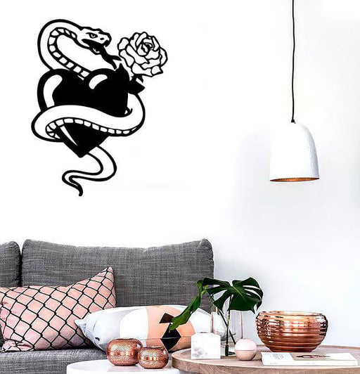 Autocollants muraux en vinyle avec motif serpent et rose, tatouage, amour, cœur, cadeau unique ig1671