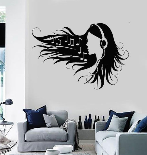 Autocollants muraux en vinyle pour adolescentes avec écouteurs Musique Rock Pop Girl (ig1563)