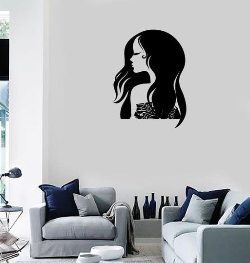 Autocollants muraux en vinyle pour fille sexy, cheveux longs, salon de beauté, coiffeur (ig1004)