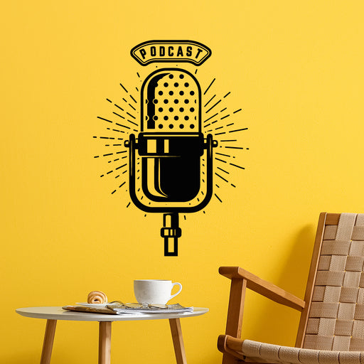 Autocollant mural en vinyle pour podcast, microphone rétro, chanteur, décoration murale (g9349)