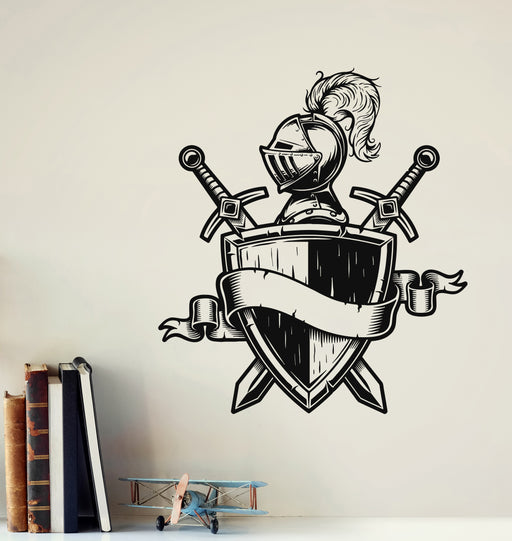 Autocollant mural en vinyle avec logo Brave Warrior, casque de chevalier médiéval, bouclier, autocollants muraux (g5309)