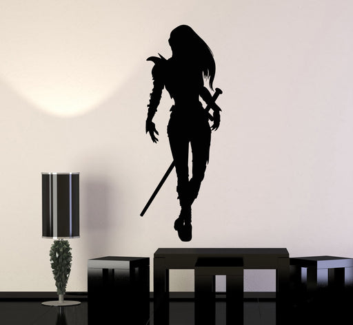Autocollant mural en vinyle Silhouette de femme guerrière Armure Épée Autocollants pour chambre d'enfants Cadeau unique (ig4999)