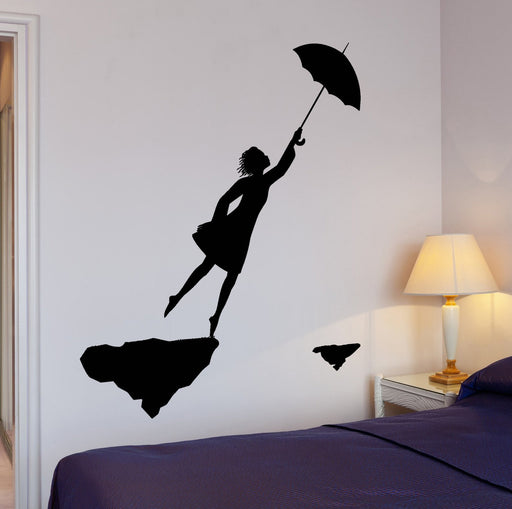 Autocollant mural en vinyle fille romantique volant avec parapluie décoration intérieure cadeau unique z4281