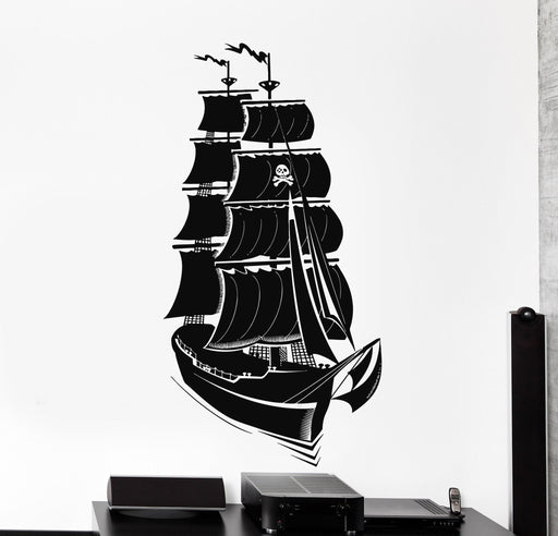 Autocollant mural en vinyle bateau pirate yacht océan marine voile noire décoration d'intérieur cadeau unique z4195