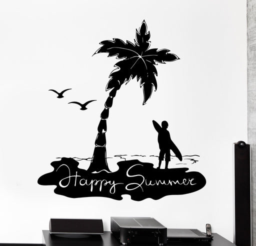 Autocollant mural en vinyle Surf Palm Happy Summer Beach Isand Décoration intérieure Cadeau unique z4138