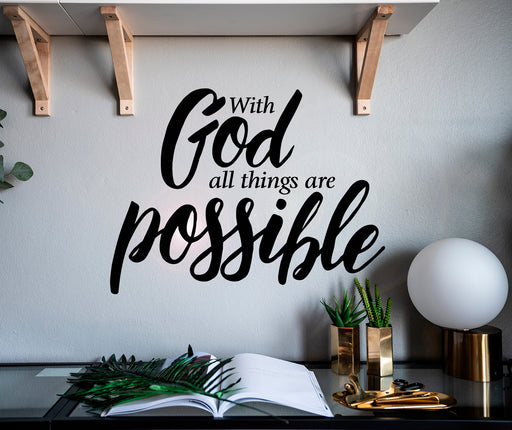 Autocollant mural en vinyle avec citation inspirante avec Dieu, toutes choses sont possibles, autocollants muraux 22,5 po x 17 po gz086