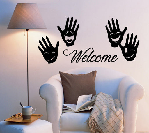 Grand autocollant mural décoratif en vinyle avec inscription « Bienvenue » à la main, décoration d'intérieur pour la maison n997