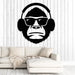 Autocollant mural en vinyle avec tête de singe cool et lunettes de soleil, casque musical, cadeau unique (2055ig)