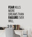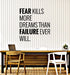 Autocollant mural en vinyle avec citation inspirante La peur tue plus de rêves Autocollants muraux (g6342)
