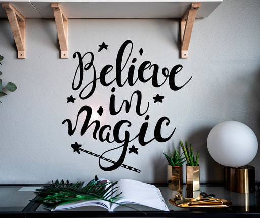 Autocollant mural en vinyle avec citation inspirante Believe In Magic, décoration d'intérieur, 22,5 po x 22 po, gz134