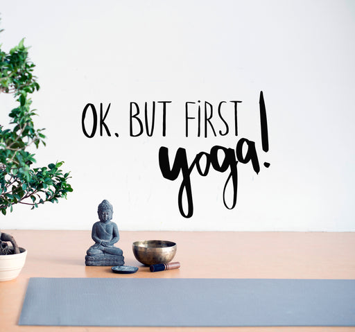 Autocollant mural en vinyle avec citation inspirante Ok mais d'abord Yoga Idée de décoration pour la maison Autocollants muraux 22,5 po x 15,5 po gz121