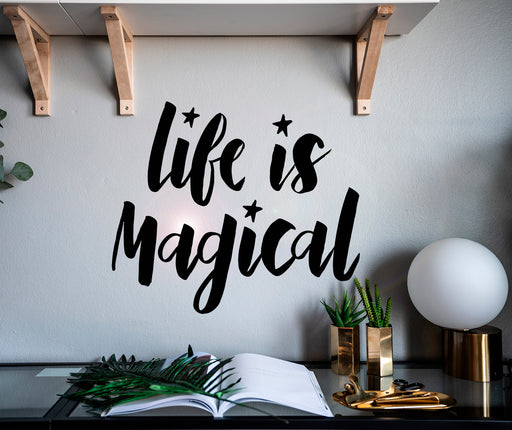 Autocollant mural en vinyle avec citation inspirante La vie est magique Autocollant mural pour chambre d'enfant 22,5 po x 19 po gz176