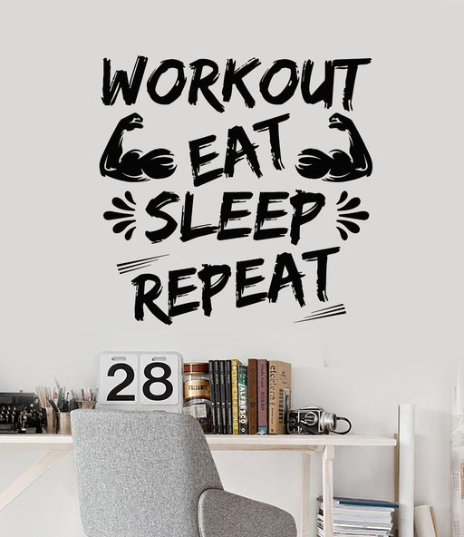 Autocollant mural en vinyle pour entraînement, manger, dormir, répéter, adolescent, décoration murale (g6371)