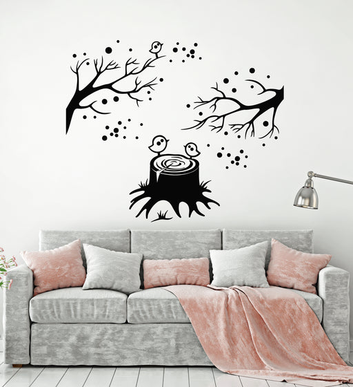 Autocollant mural en vinyle dessin animé oiseaux arbres branche nature chambre d'enfant autocollants muraux (g1249)