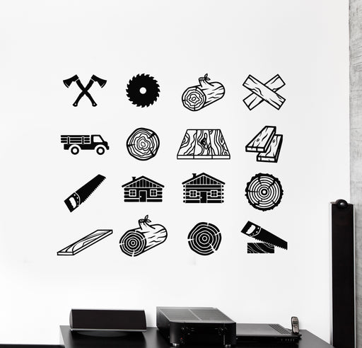 Autocollant mural en vinyle Woodworks Forest Trees Wood Axes Woodcutter Stickers Mural (g5936)