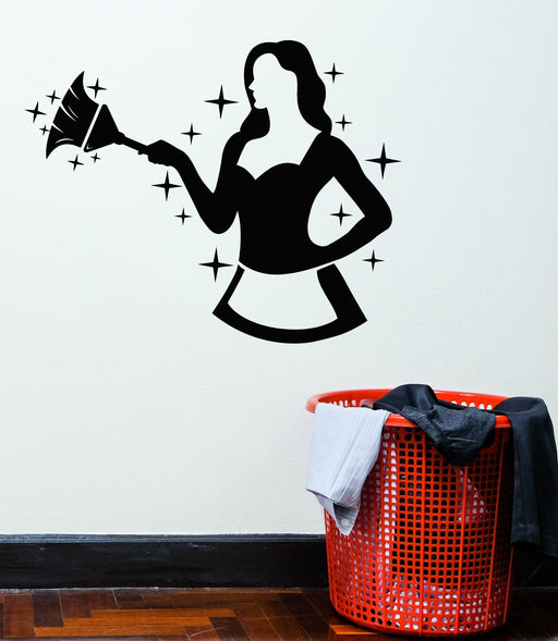 Autocollant mural en vinyle avec logo de femme de ménage, femme de ménage, femme de ménage, blanchisserie, maison, autocollants muraux (g8854)