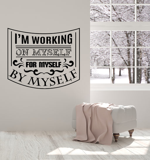 Autocollant mural en vinyle avec lettrage et phrase de motivation « Je travaille sur moi-même » Autocollants inspirants pour la décoration murale (g1582)