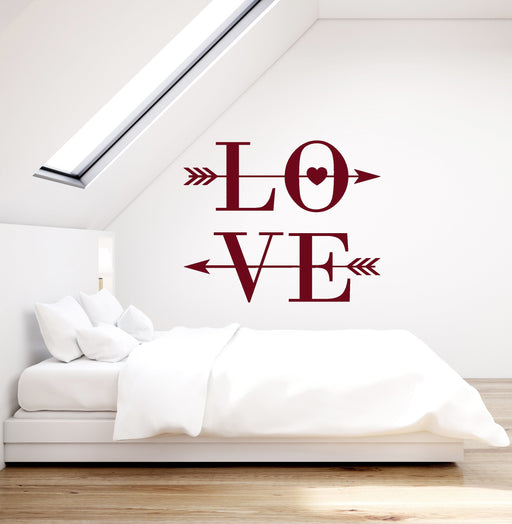 Autocollant mural en vinyle avec mots d'amour, flèches, cœur, romantique, pour chambre à coucher, art mural (ig5548)