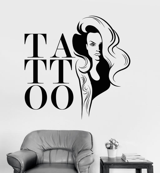 Autocollant mural en vinyle pour salon de tatouage, femme et fille, cadeau unique (ig3745)