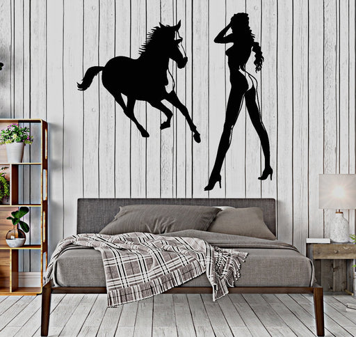 Sticker mural talons hauts fille sexy et cheval décoration intérieure cadeau unique z4052