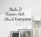 Autocollant mural lettre inspirante Make It Happen Girl Shock Everyone Vinyl Decor Noir 22,5 po x 12 po gz339