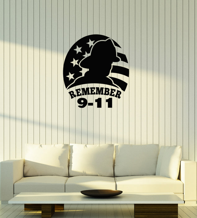 Vinyl Wall Decal Firefighter 9.11 September Memorial Patriot Day Stickers Mural (ig6005)