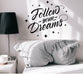 Vinyl Wall Decal Follow Your Dreams Inspirational Quote Home Decor Stickers Mural 22.5 in x 19.5 in gz282