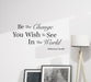 Wall Decal Inspirational Quote Change World Ghandi Interior Vinyl Decor Black 22.5 x 11 gz449