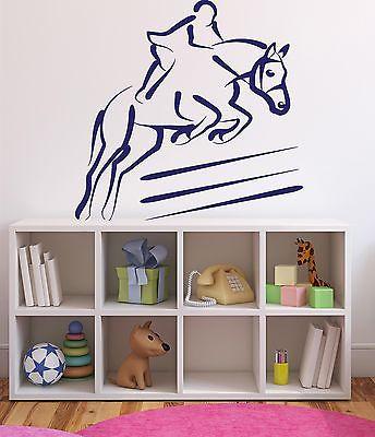 Wall Sticker Vinyl Decal Horserase Jockey Jump Over the Barrier Unique Gift (n147)