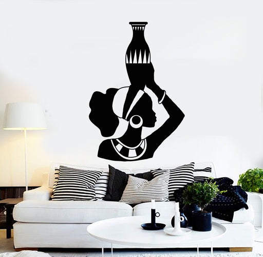 Виниловая наклейка на стену Красивая африканская женщина Кувшин Афро этнический стиль Наклейки настенная роспись (g1182)