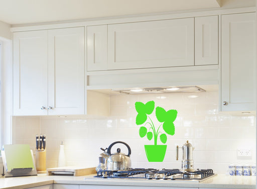 Виниловый декор для кухни, кафе, горшок с растением, клубника, наклейка на стену (n618)