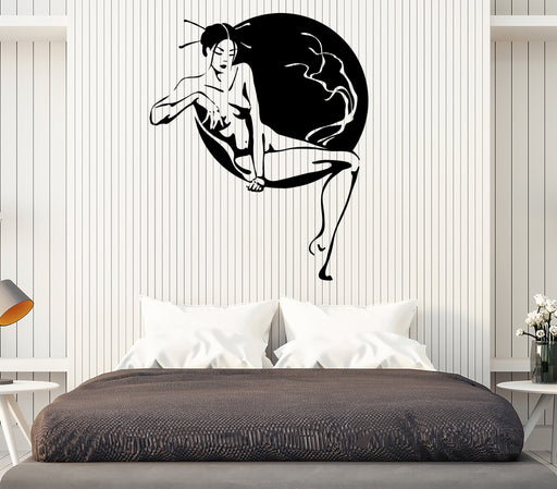 Виниловая наклейка гейша японская красавица обнаженная женщина сакура дерево настенная наклейка уникальный подарок (n803)