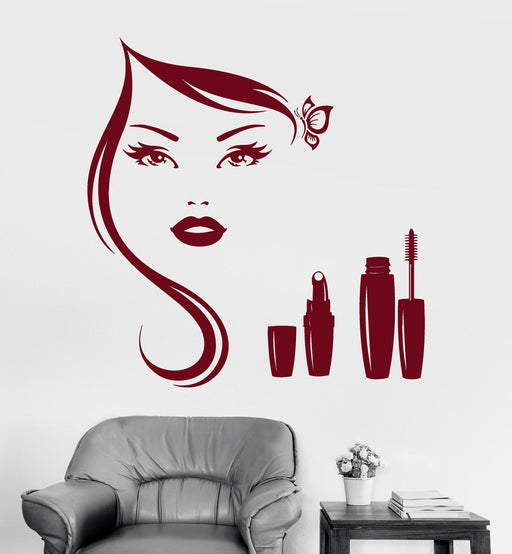 Виниловые наклейки на стену Салон красоты Косметика Макияж Женщина Наклейки Фреска (g5641)