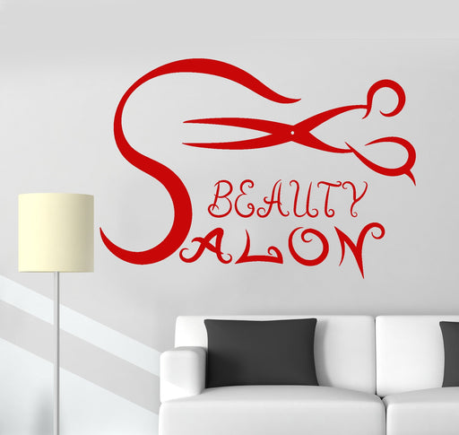 Виниловая наклейка на стену салон красоты парикмахер логотип ножницы слова профессиональные наклейки парикмахера (4413ig)