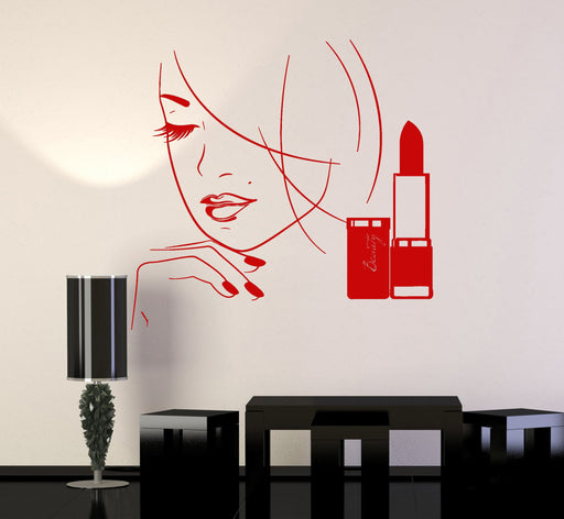 Виниловая наклейка на стену Салон красоты Красивая женщина Помада Наклейки Фрески Уникальный подарок (ig4730)