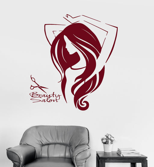 Виниловая наклейка на стену салон красоты женщина длинные волосы парикмахерская наклейки уникальный подарок (358ig)