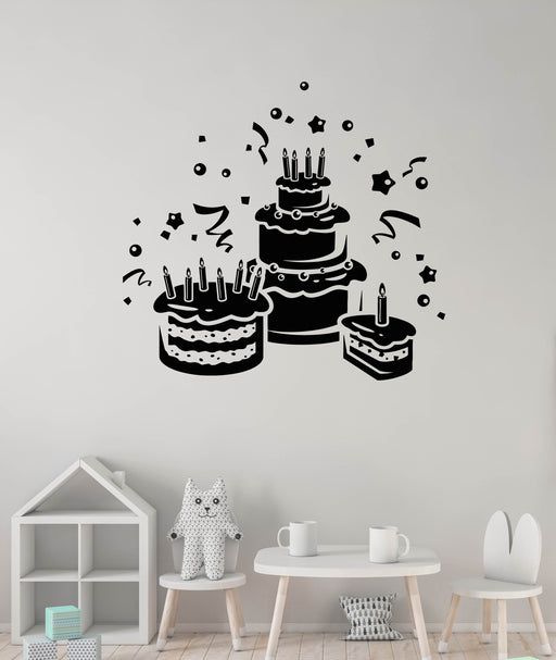 Виниловые наклейки на стены для дня рождения, праздничные торты, свечи, наклейки для декора вечеринки, настенная живопись (g8725)