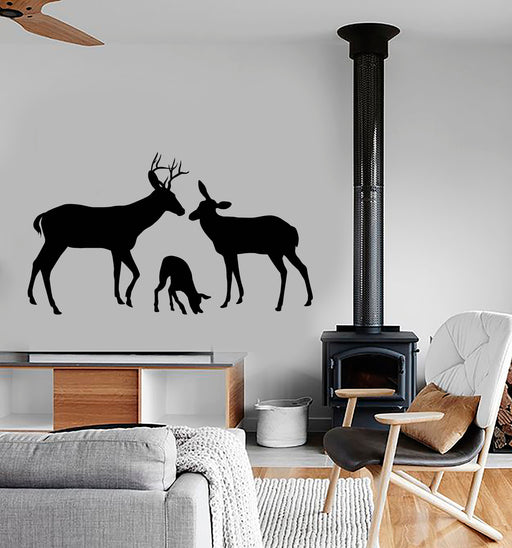 Виниловые наклейки на стену Лес Олень Семья Животные Природа Наклейки (3536ig)