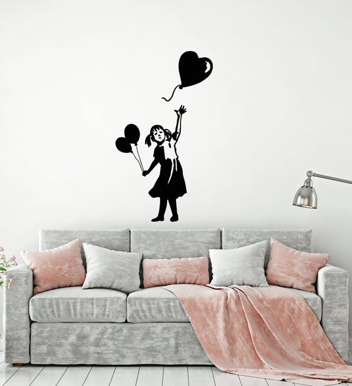 Виниловая наклейка на стену Девушка с воздушным шаром в форме сердца Идея украшения дома Наклейки настенная роспись (3566ig)